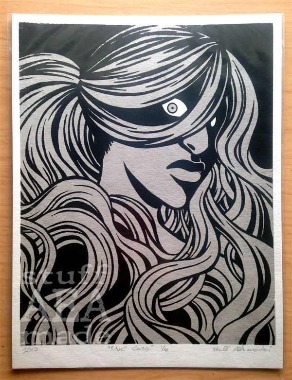 Based on my 'Spooky Hair' brush and ink illustration from 2014, this print is available in single and double layer versions!