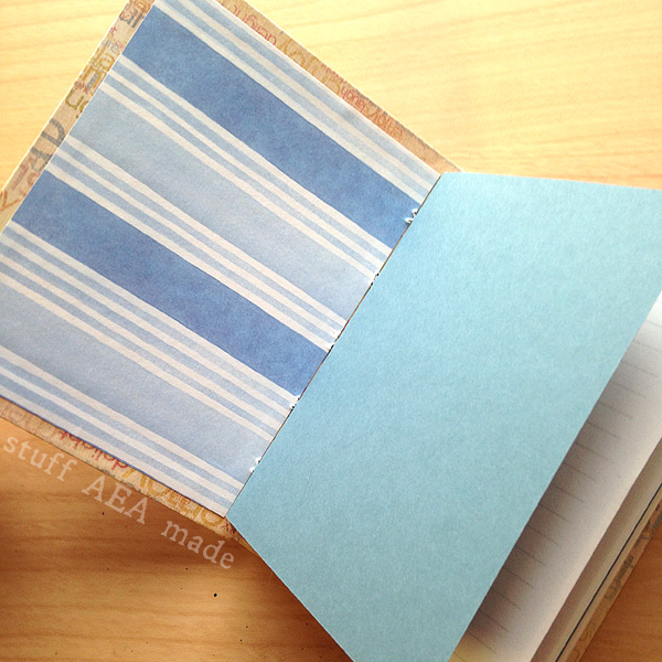 Covers are 4.75 x 6 inches (12.1 x 15.4 cm) and made of heavy mat-board, interior pages are 4.25 x 5.5 inches (14 x 10.7 cm) 24 LB (75 g/m2) lined white paper.